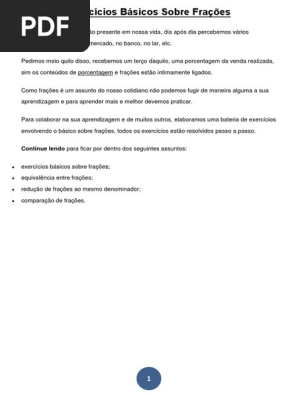 Exercicios Basicos Sobre Fracoes Fracao Matematica Notacao Matematica Avaliacao Gratuita De 30 Dias Scribd