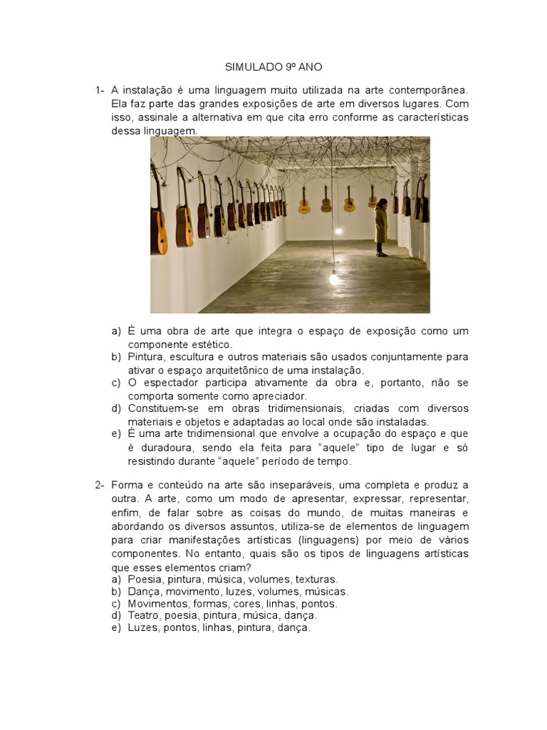 1º Simulado 9º Ano Artes Pinturas Arte Abstrata