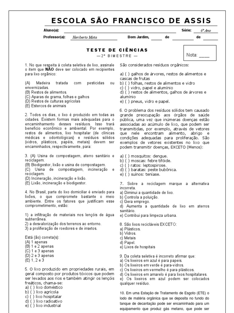 Exercicios Sobre Lixo Urbano E A Poluicao Gabarito