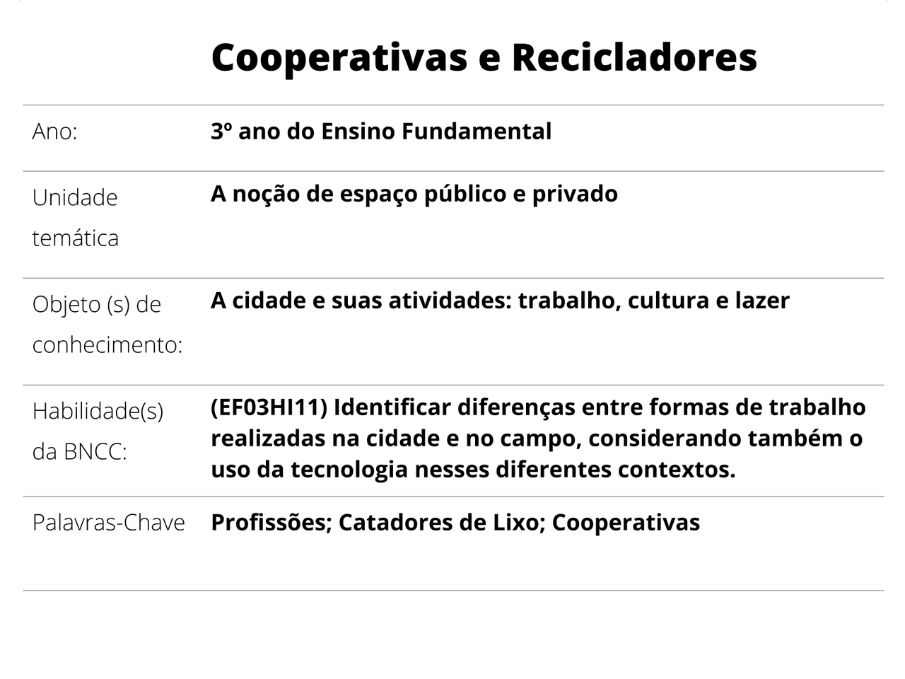 Plano De Aula 3º Ano Historia Cooperativas E Recicladores