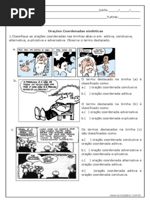 50 Atividades Sobre Orações Coordenadas Com Tirinhas