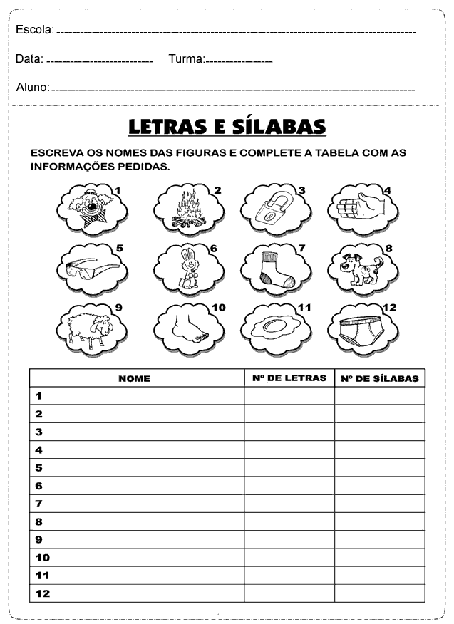 Atividades Escolares Trabalhando Com O Numero De Silabas