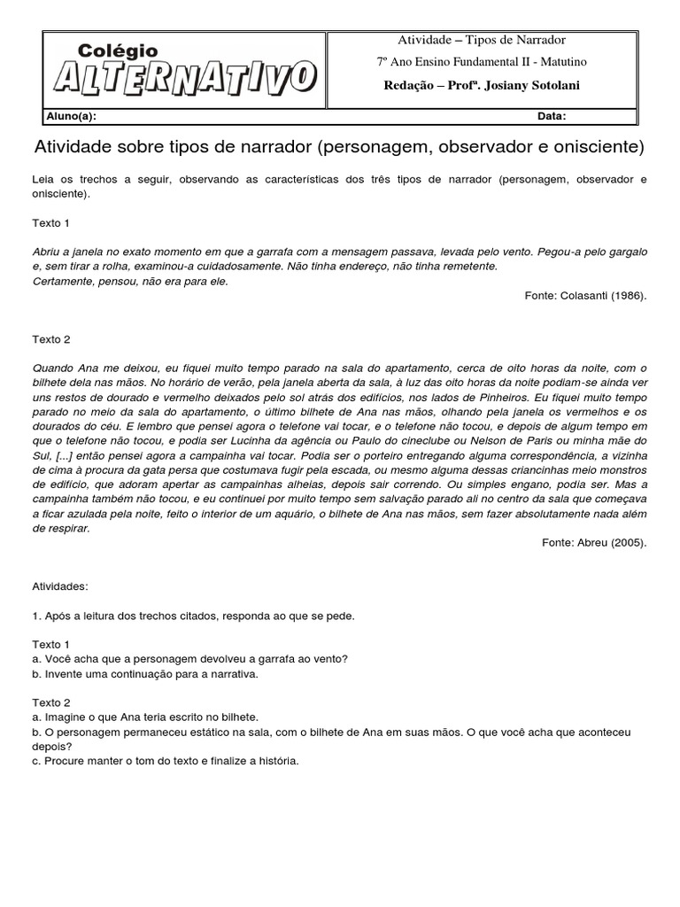 Tipos De Narrador Personagem Ou Observador Narrador Personagem