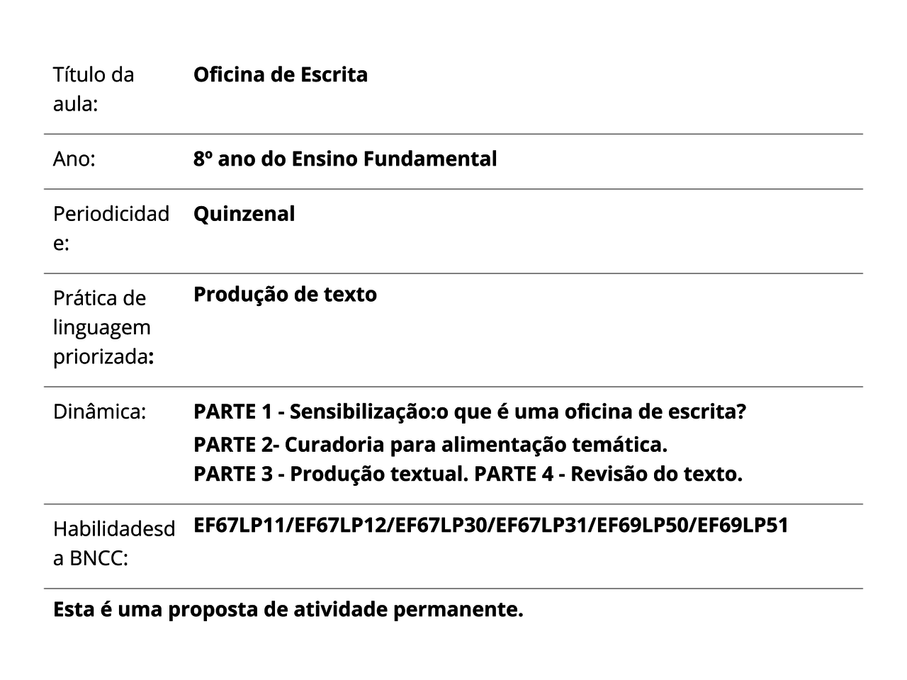 Plano De Aula 8º Ano Lingua Portuguesa Oficina De Escrita