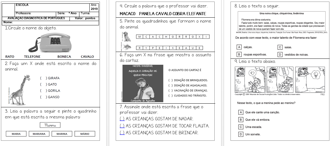 Avaliação de lingua portuguesa 2o ano