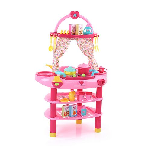 0 comment report abuse. Your little mom will love to make believe with this baby alive three in one cook n care play set. This multipurpose kitchen set will let your child prepare pretend food feed their babydoll and bathe them all in one. An interactive stove top features electronic cooking sounds for added fun.