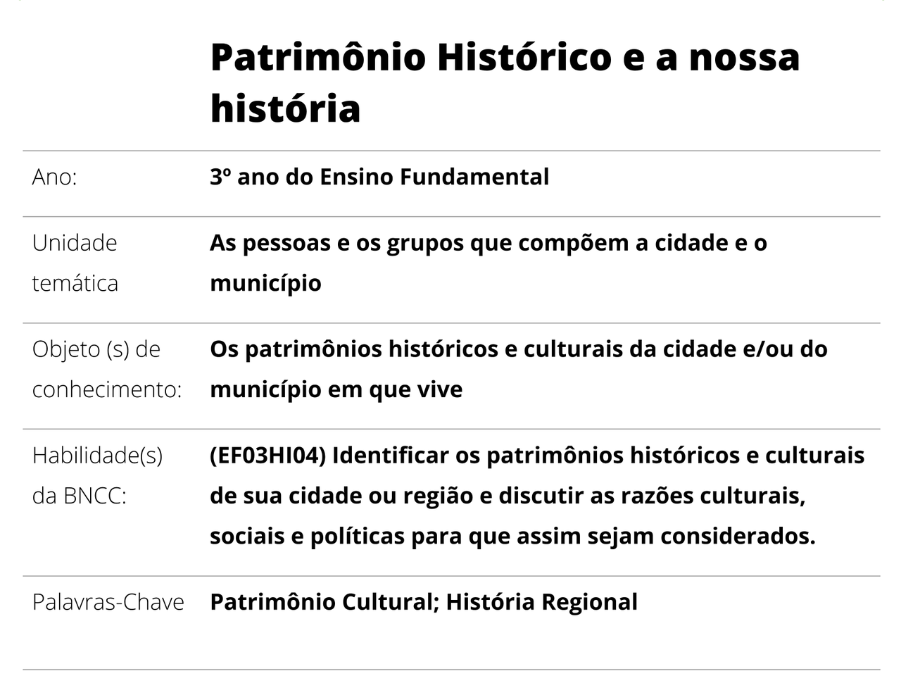 Plano De Aula 3º Ano Historia O Patrimonio Cultural Da Minha