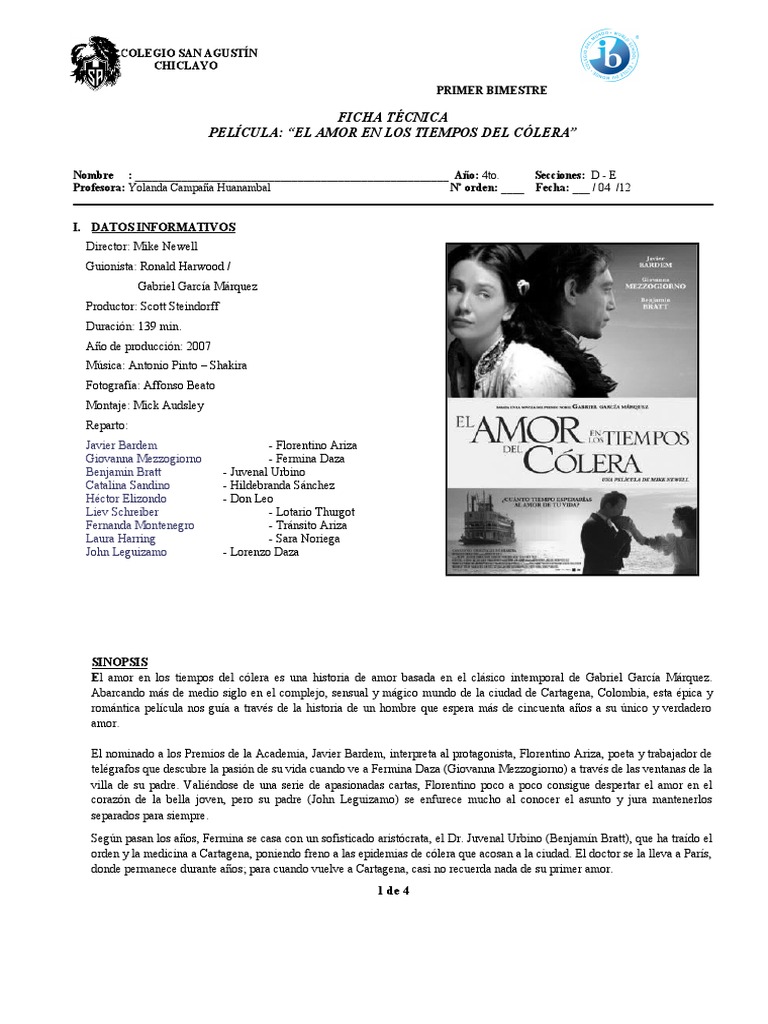 Ficha Tecnica El Amor En Los Tiempos Del Colera