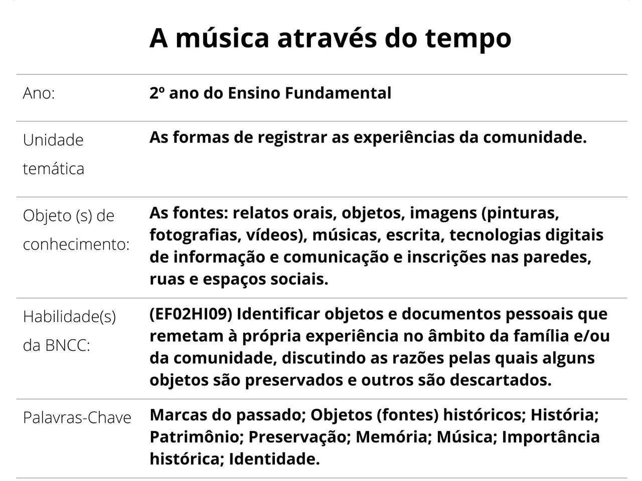 Plano De Aula 2º Ano Historia Recordar E Viver