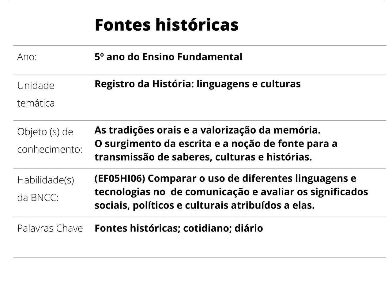 Plano De Aula 5º Ano Historia Fontes Historicas