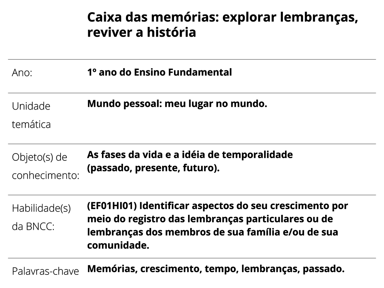 Plano De Aula 1º Ano Historia Caixa Das Memorias Explorar