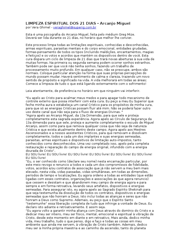 Limpeza espiritual 21 dias arcanjo miguel vera ghimel