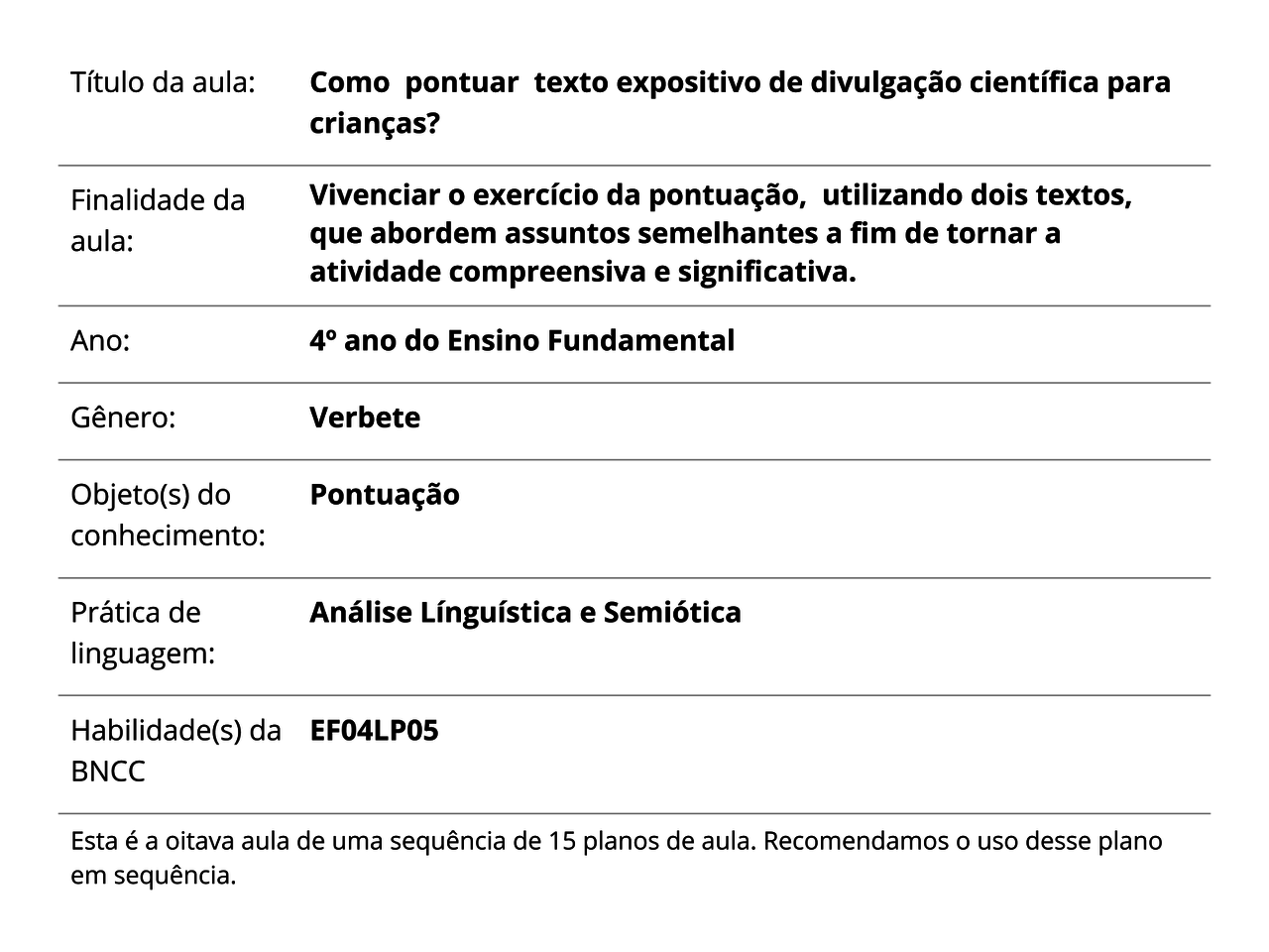 Plano De Aula 4º Ano Lingua Portuguesa Como Pontuar Texto