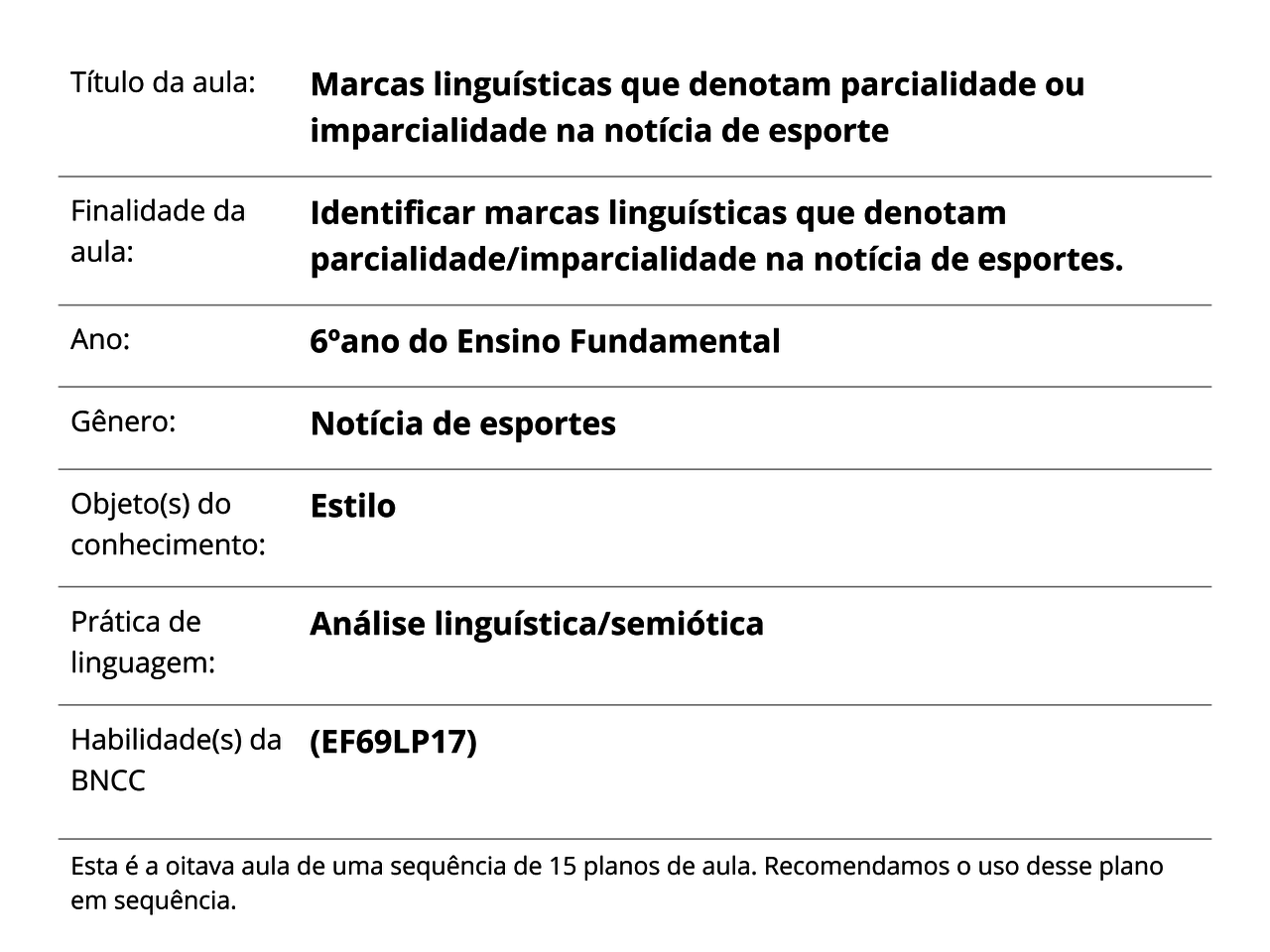 Plano De Aula 6º Ano Lingua Portuguesa Marcas Linguisticas